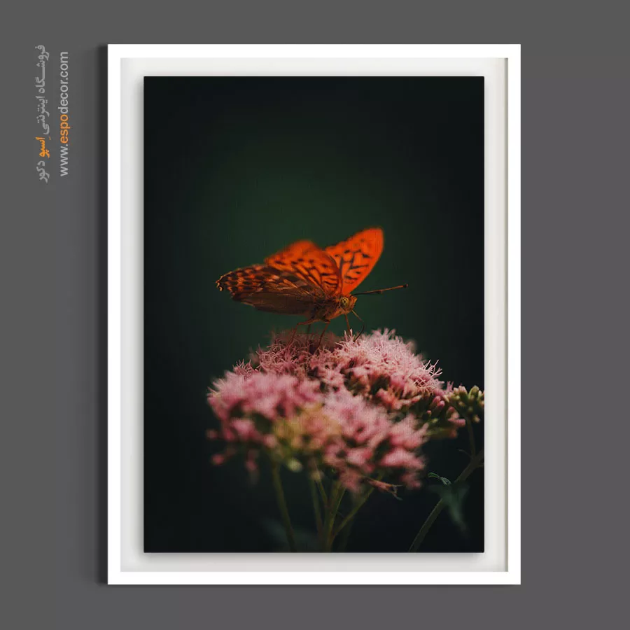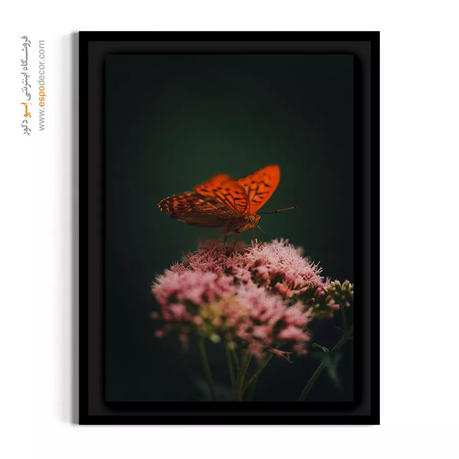 این اثر با نمایش جزئیات خیرهکننده یک پروانه نارنجی بر فراز گلهای صورتی، انتخابی مقتدر برای ایجاد یک نقطه کانونی در سالنهای پذیرایی مدرن، اتاقهای خواب مستر و فضاهای اداری شیک است. تضاد رنگی میان سوژه درخشان و پسزمینه تیره، حسی از عمق و وقار به محیط میبخشد که به خوبی با چیدمانهای مینیمال و معاصر هماهنگ میشود.