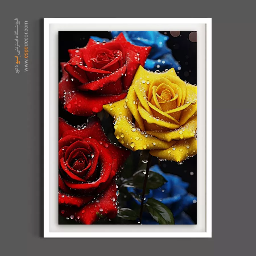 این اثر، سمفونی باشکوهی از تضادهاست؛ جایی که سرخی آتشین و زرد طلایی گلبرگ‌ها در آغوش قطرات الماس‌گونه شبنم، نگاه هر بیننده‌ای را تسخیر می‌کنند. عمق رنگی بی‌نظیر و جزئیات میکروسکوپی این کار، آن را به انتخابی مقتدر برای دیوارهای پهن سالن‌های پذیرایی، لابی‌های مجلل، هتل‌های لوکس و اتاق خواب‌های سلطنتی تبدیل کرده است.