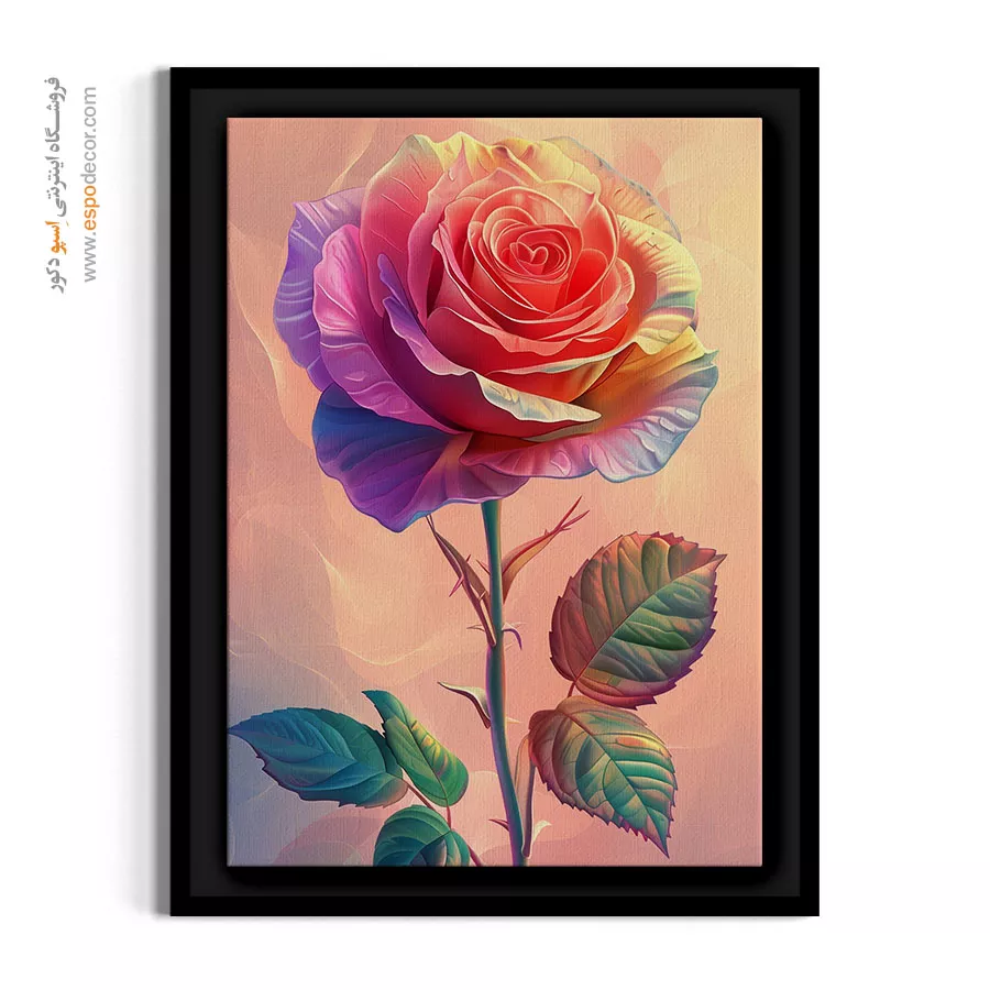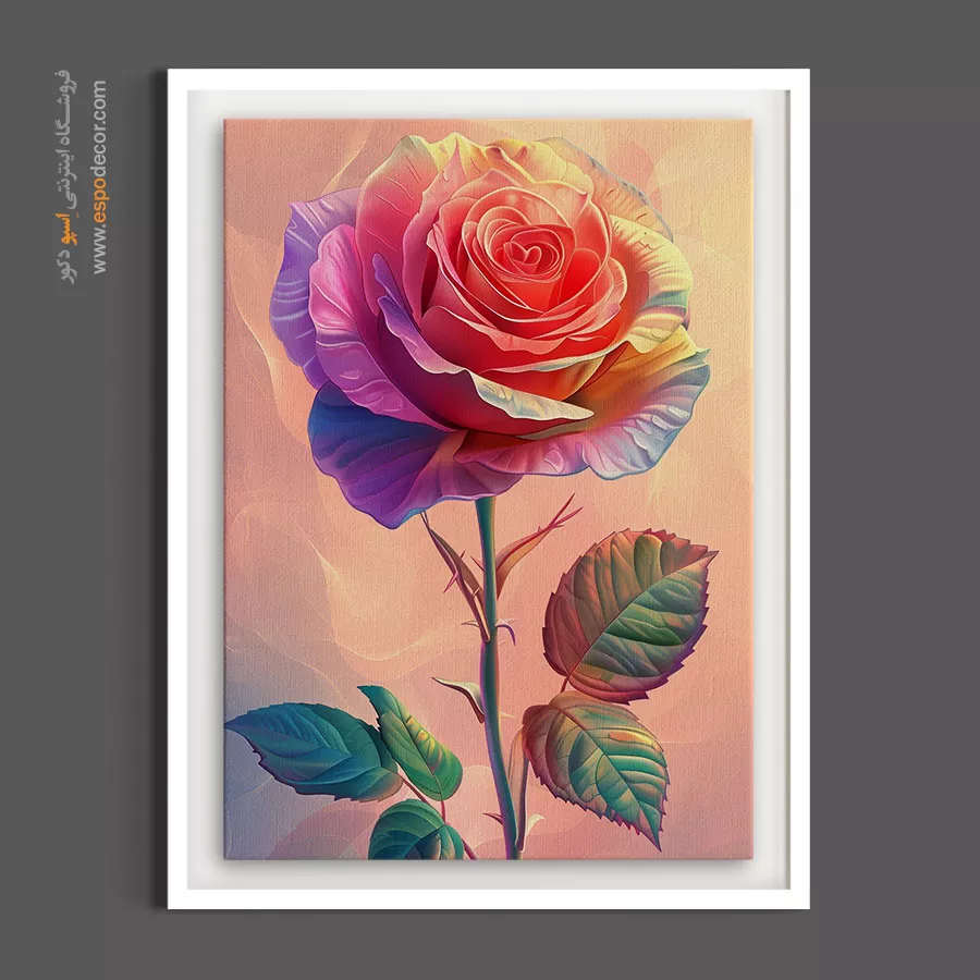 این اثر با نمایش خیرهکننده رز در میان طیفهای نرم صورتی، زرد و بنفش، اتمسفری سرشار از آرامش و پویایی هنری را به فضای شما هدیه میدهد. طراحی مدرن و پالت رنگی ملایم این تابلو، آن را به انتخابی بیرقیب برای تلطیف دکوراسیونهای مینیمال، نئوکلاسیک و اتاقهای خواب مدرن تبدیل کرده است.