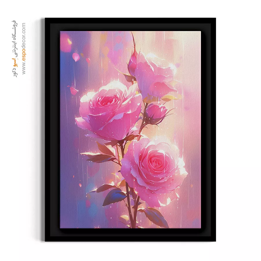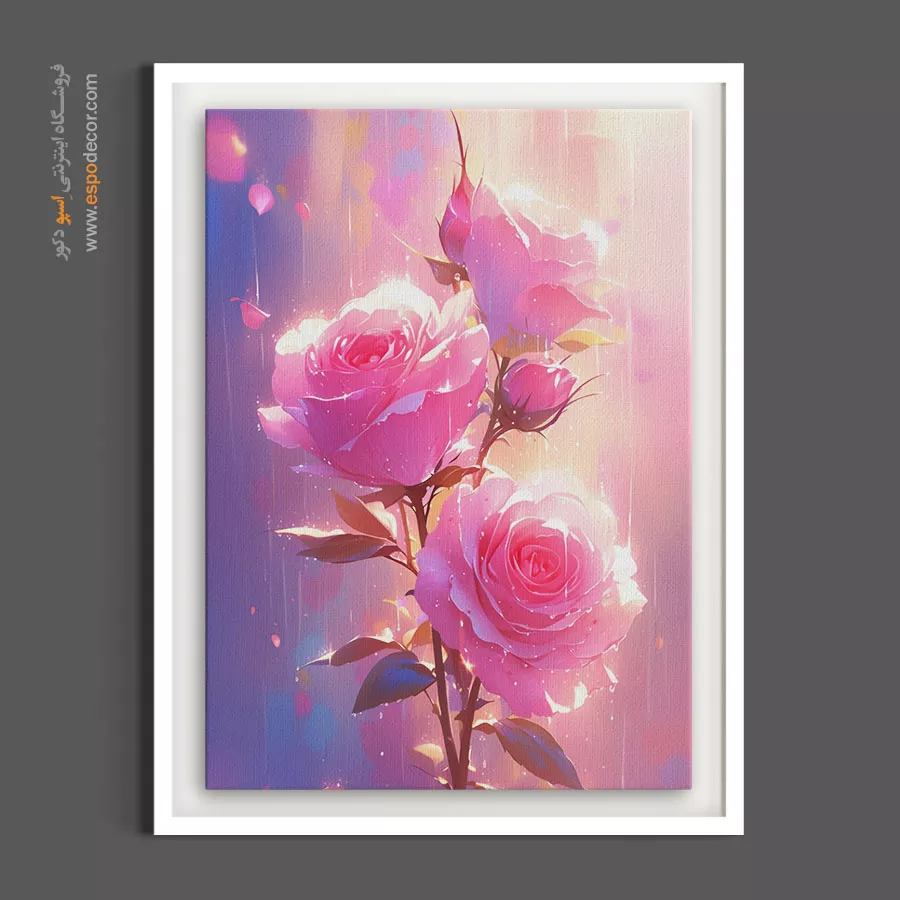 این اثر با نمایش رزهای درخشان در هالهای از نورهای اثیری، اتمسفری شاعرانه و سرشار از رویا را به فضای داخلی شما هدیه میدهد. ترکیب رنگهای پاستلی و درخشش جادویی، این تابلو را به انتخابی بیرقیب برای تلطیف دکوراسیون اتاقهای خواب و سالنهای مدرن تبدیل کرده است.