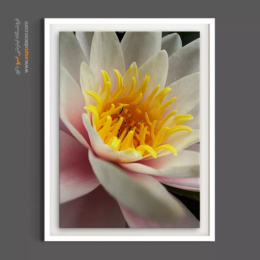 این اثر با تمرکز بر قلب تپنده و زرین نیلوفر آبی در میان گلبرگهای سپید، اتمسفری سرشار از خلوص و تمرکز ذهنی را در فضای شما طنینانداز میکند. جزئیات بینظیر عکاسی ماکرو در این طرح، آن را به انتخابی مقتدر برای محیطهای مینیمال و فضاهای مدیتیشن تبدیل کرده تا وقاری طبیعی را به دیوارهای شما ببخشد.