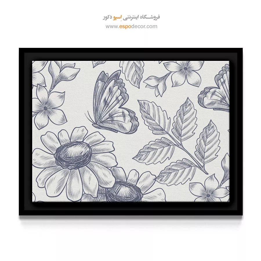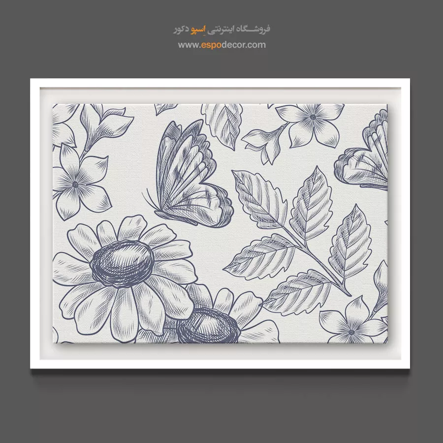 این تابلو یک اثر فوقالعاده ظریف، آرام و با خطوط تمیز است. الگوی تکراری و جزئیات دقیق پروانه و گلها در سبک حکاکی/مدادی، حسی از سادگی شیک، طبیعت خام و ظرافت قدیمی را منتقل میکند. این طرح ایدهآل برای اتاق خوابها، فضاهای با دکوراسیون مینیمال و اسکاندیناوی، یا راهروهایی که به یک بافت ظریف و خنثی نیاز دارند، است.
