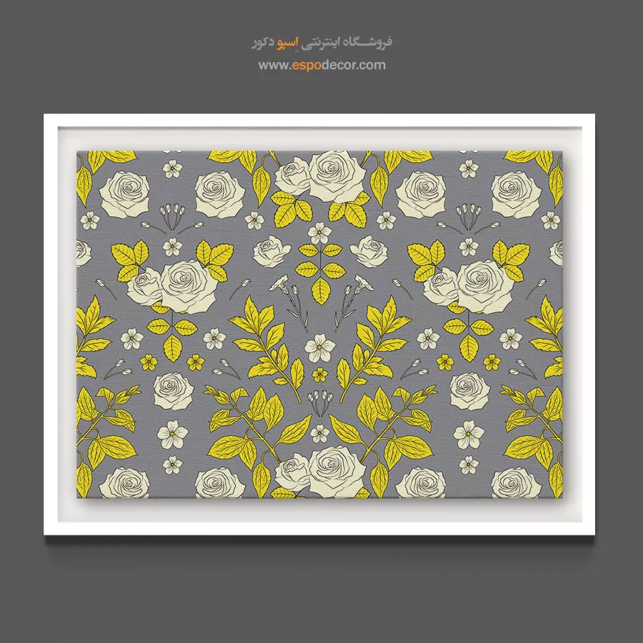 این تابلو یک اثر فوقالعاده متعادل، شیک و بروز است. الگوی تکراری و متقارن گل رز، حسی از لوکس بودن و نظم کلاسیک را منتقل میکند، در حالی که تضاد زرد درخشان و طوسی خنثی آن را کاملاً مدرن میسازد. این طرح ایدهآل برای اتاق نشیمن، فضاهای ناهارخوری با دکوراسیون نئوکلاسیک/اسکاندیناوی، یا دیوارهای بزرگ که نیاز به یک بافت رنگی قوی دارند، میباشد.