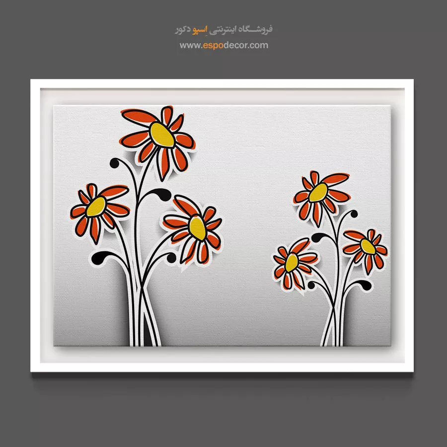 این تابلو یک اثر فوقالعاده شاداب، ساده و با کنتراست رنگی گرم است. استفاده از رنگهای نارنجی و زرد روشن و پرانرژی در گلها در ترکیب با پسزمینه خنثی خاکستری، تمام توجه را به سوژههای اصلی جلب میکند. این طرح ایدهآل برای اتاقهای کودکان و نوجوانان (به دلیل سادگی کارتونی)، آشپزخانهها، یا هر مکانی که به یک عنصر بصری ساده اما بسیار چشمنواز و گرم نیاز دارد، میباشد و فوراً حس نشاط و انرژی آفتابی را به فضا منتقل میکند.