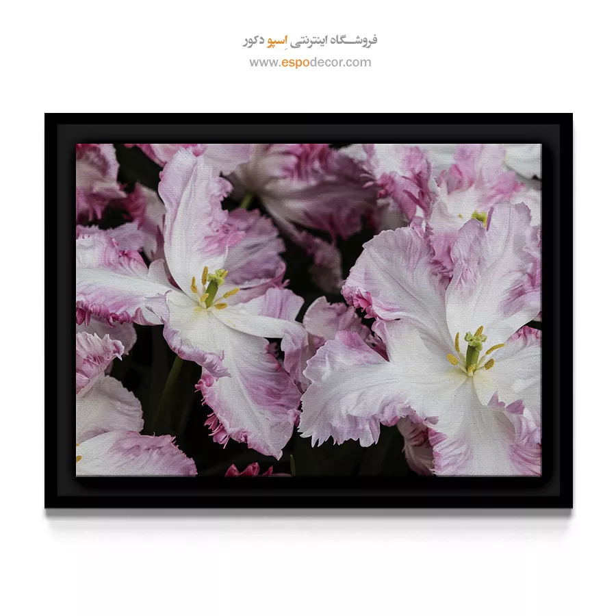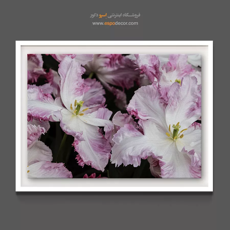 این تابلو یک اثر فوقالعاده رمانتیک، مجلل و با حس طراوت بهاری است. ترکیب رنگ سفید روشن در کنار صورتی ملایم، حالتی آرامشبخش و زنانه ایجاد میکند. بافت چینخورده و خاص گلبرگهای لاله طوطی، این اثر را از یک طرح ساده متمایز کرده است. این طرح ایدهآل برای اتاق خوابها، سالنهای زیبایی، فضاهای پذیرایی روشن یا هر مکانی که نیاز به یک عنصر بصری با تم رنگی پاستلی، شاداب و با تمرکز بر بافت و جزئیات منحصربهفرد دارد، میباشد.