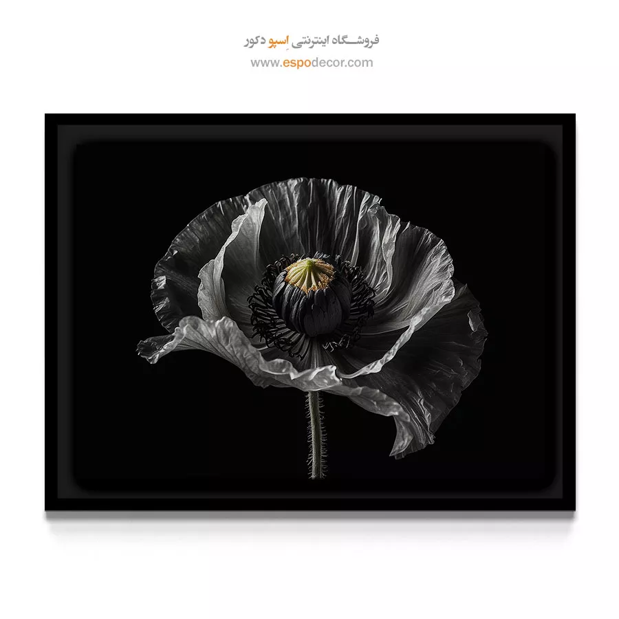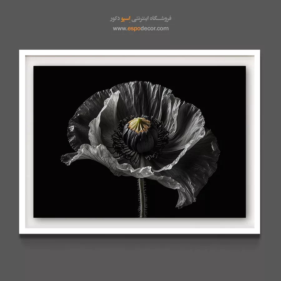 این تابلو نمایانگر نهایت ظرافت و تجمل در سادگی است. ترکیب رنگهای سیاه، سفید و خاکستری در کنار بافت شفاف گلبرگها، این اثر را به یک قطعه دکوراتیو همیشگی تبدیل کرده است که هرگز از مد نمیافتد. این طرح به دلیل ماهیت خنثی و مونوکروم خود، برای پذیراییهای مینیمال، اتاقهای خواب با تم تیره، و یا دفاتر کاری که به دنبال فضایی متمرکز و هنری هستند، گزینهای بینظیر است.
