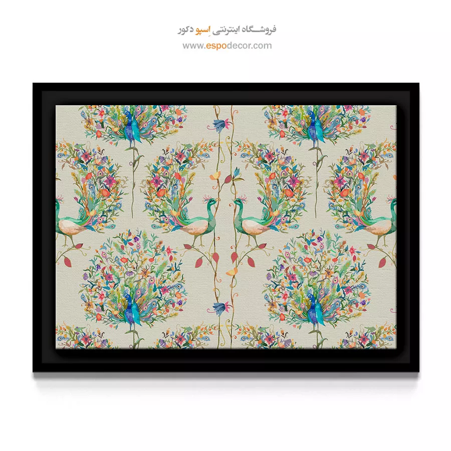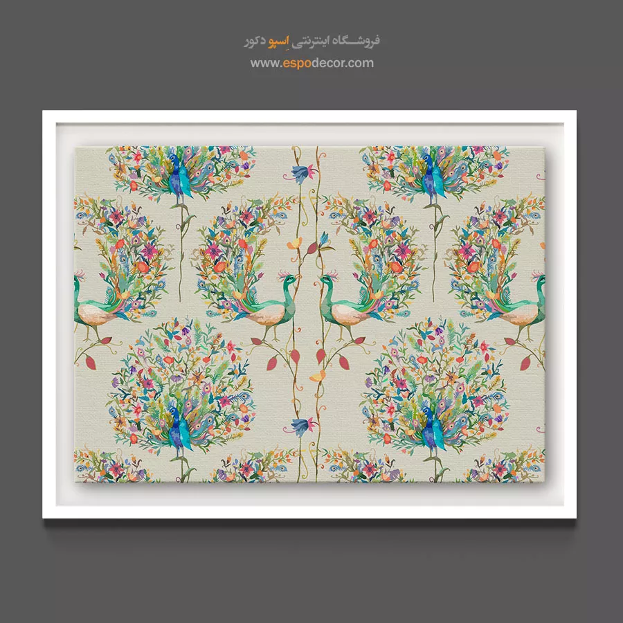 این تابلو فراتر از یک تصویر ساده، یک طرح غنی و بافتدار است که حسی از هنر سنتی را به فضا میآورد. طاووسهای گلدار در کنار پالت رنگی پاستلی، یک حس سفری فانتزی به باغهای شرقی را القا میکنند. این اثر به دلیل ماهیت الگویی خود، عمق بصری ایجاد کرده و برای نصب روی دیوارهای بزرگ در اتاق نشیمن، اتاق خواب یا فضاهایی با سبک بوهو و نئوکلاسیک که به دنبال گرما و رنگ هستند، بسیار مناسب است.