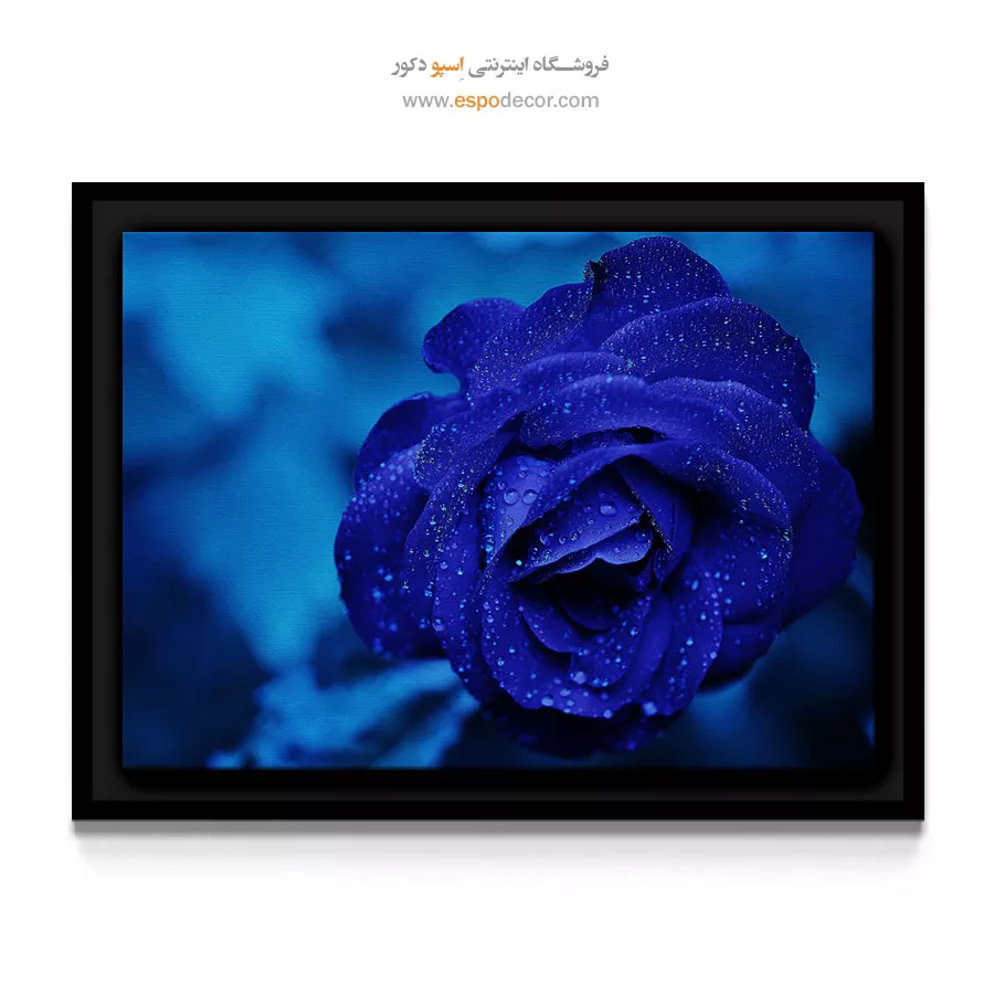 این تابلو با رنگ آبی عمیق و گیرای خود، یک نقطه کانونی قوی و آرامشبخش در فضا ایجاد میکند. جلوه شبنمزده و درخشان روی گلبرگها، حسی از بافت و کیفیت بالای عکاسی را منتقل میکند. تم مونوکروم سرد آن، برای دکوراسیونهای مدرن، لابیهای شیک، فضاهای مدیتیشن یا اتاقهایی با تم رنگی خاکستری یا آبی، انتخابی بینظیر است که به دنبال عمق بصری و آرامش دراماتیک هستند.
