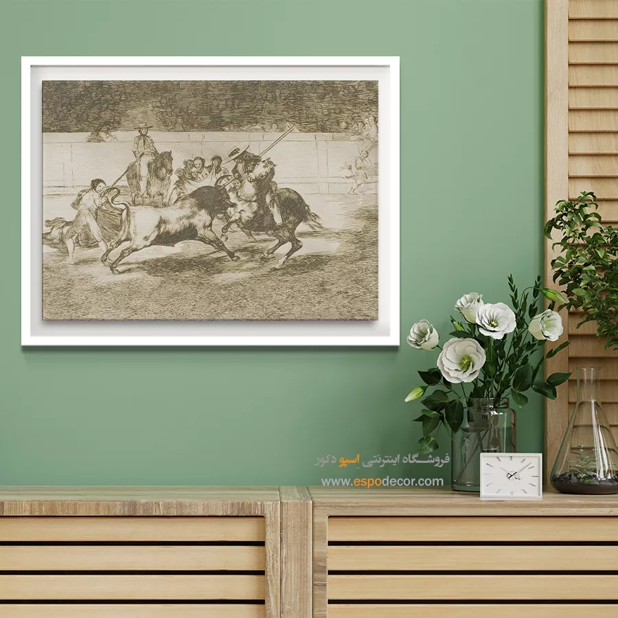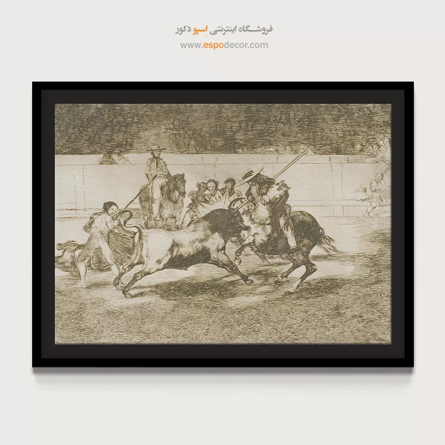 رندون قدرتمند با پیکه به گاو نری ضربه میزند – تابلو نقاشی فرانسیسکو گویا