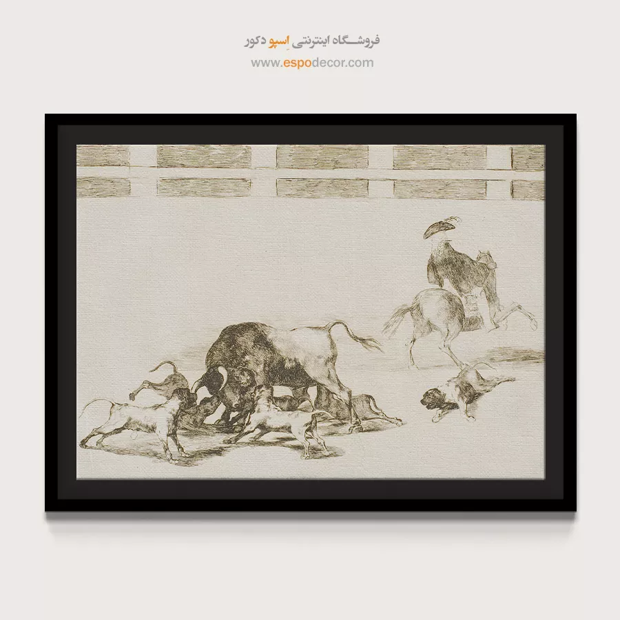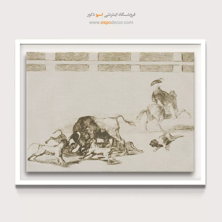سگها را روی گاو نر رها میکنند – تابلو نقاشی فرانسیسکو گویا