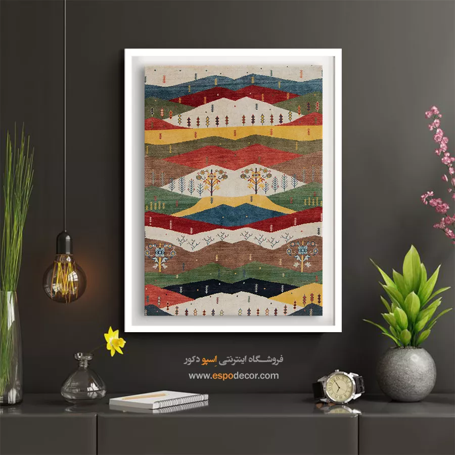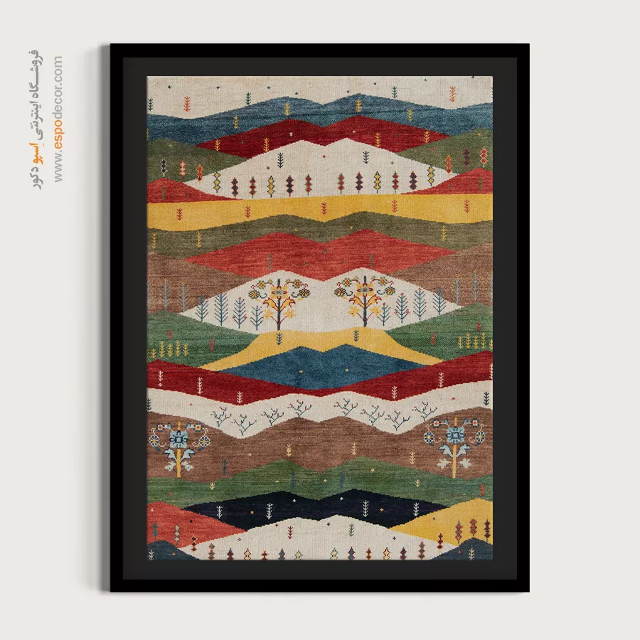 تابلو بوم گبه، روایتی از رنگ و ریشه است؛ جایی که نقوش سنتی ایرانی بر روی تابلو میرقصند.