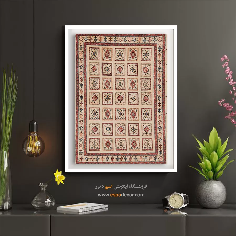 تابلو بوم گبه، روایتی از رنگ و ریشه است؛ جایی که نقوش سنتی ایرانی بر روی تابلو میرقصند.