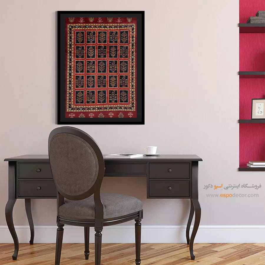 تابلو بوم گبه، روایتی از رنگ و ریشه است؛ جایی که نقوش سنتی ایرانی بر روی تابلو میرقصند.