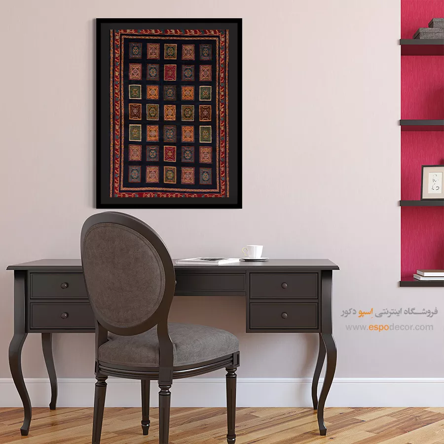 تابلو بوم گبه، روایتی از رنگ و ریشه است؛ جایی که نقوش سنتی ایرانی بر روی تابلو میرقصند.