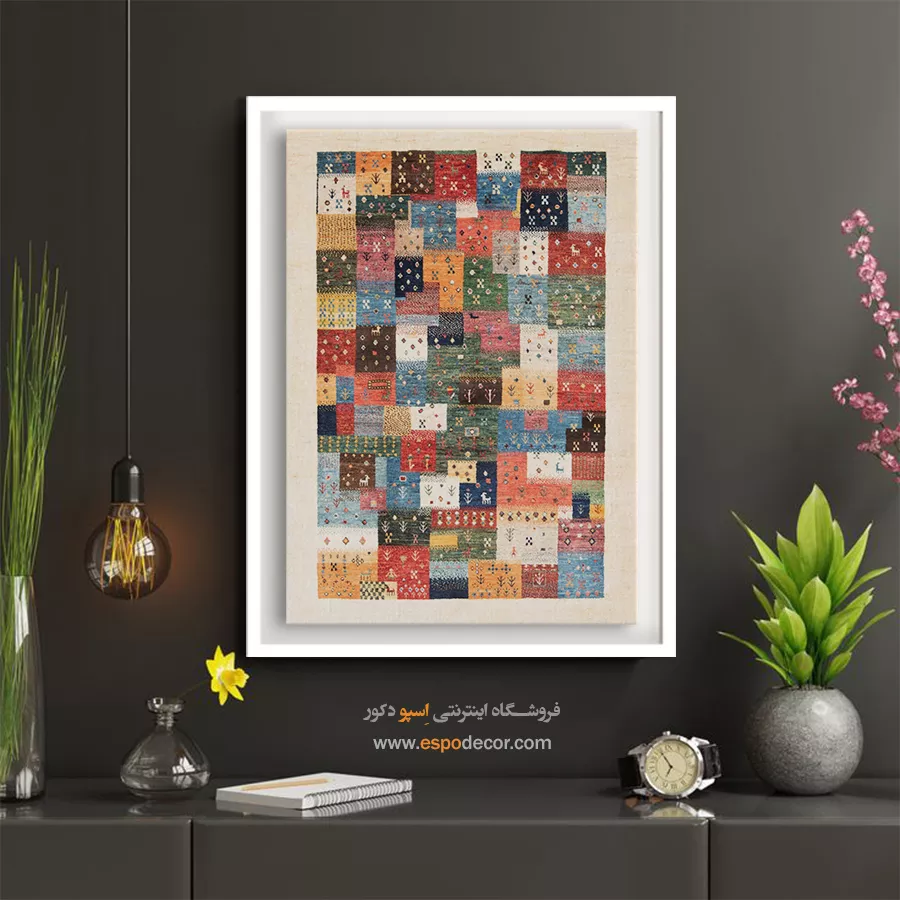 تابلو بوم گبه، روایتی از رنگ و ریشه است؛ جایی که نقوش سنتی ایرانی بر روی تابلو میرقصند.