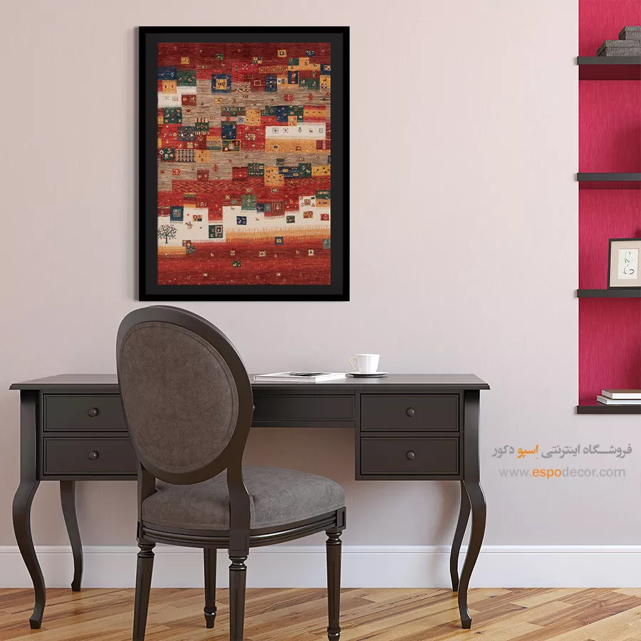 تابلو بوم گبه، روایتی از رنگ و ریشه است؛ جایی که نقوش سنتی ایرانی بر روی تابلو میرقصند.