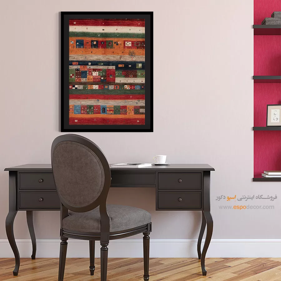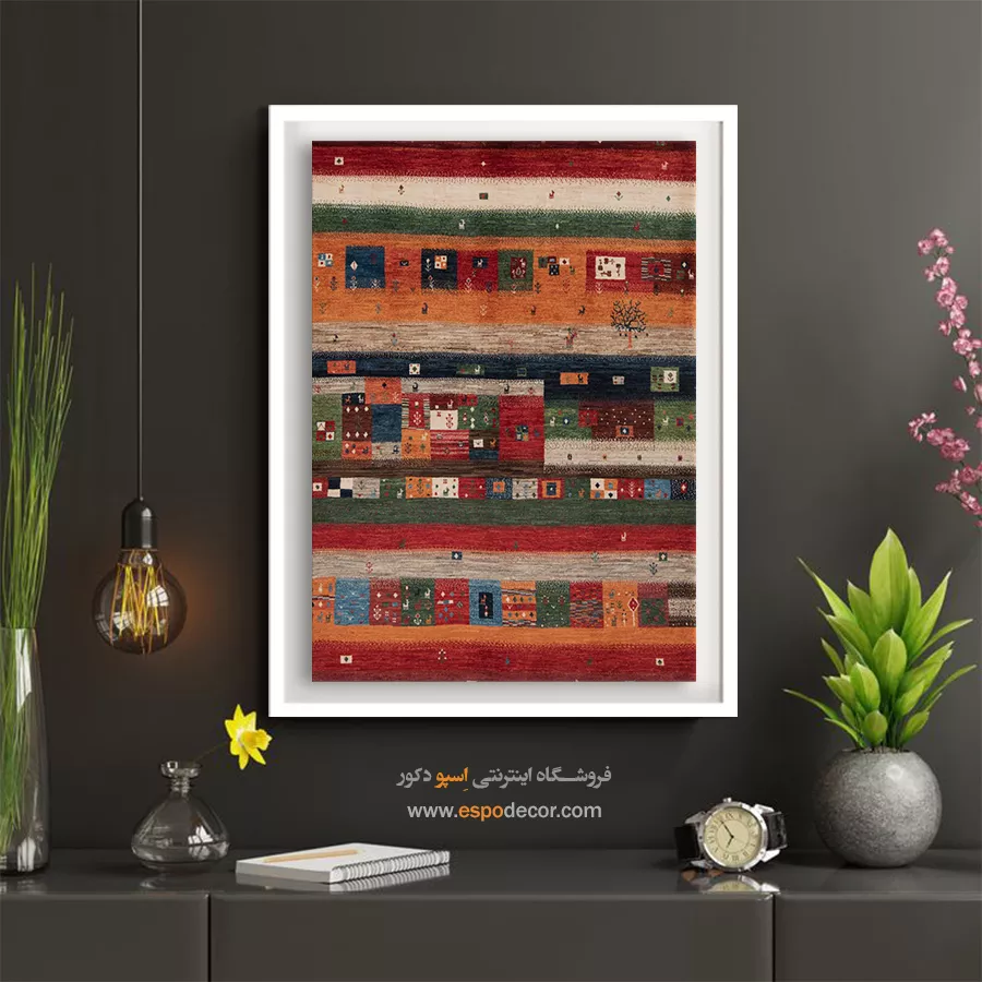تابلو بوم گبه، روایتی از رنگ و ریشه است؛ جایی که نقوش سنتی ایرانی بر روی تابلو میرقصند.