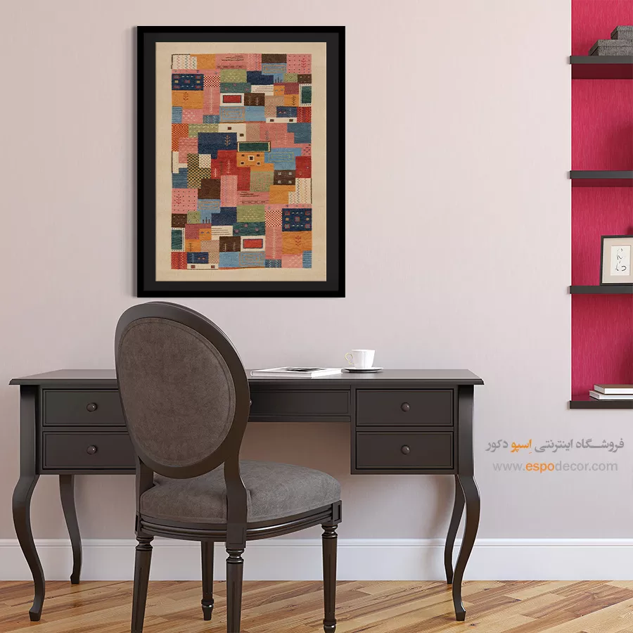 تابلو بوم گبه، روایتی از رنگ و ریشه است؛ جایی که نقوش سنتی ایرانی بر روی تابلو میرقصند.