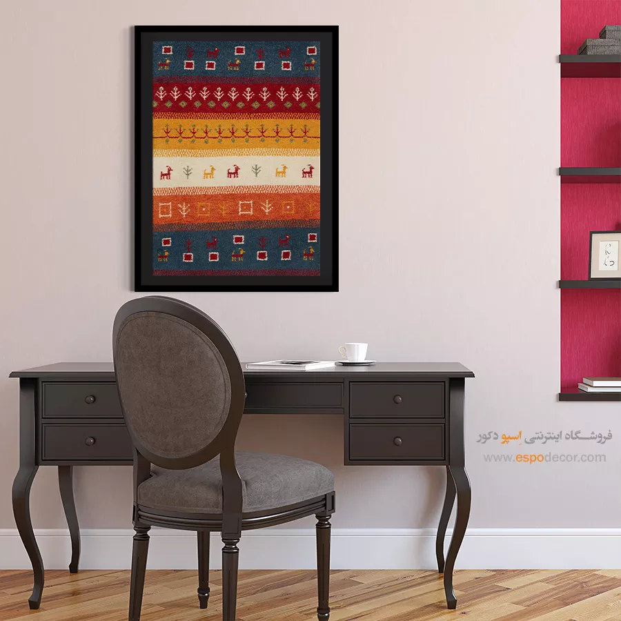 تابلو بوم گبه، روایتی از رنگ و ریشه است؛ جایی که نقوش سنتی ایرانی بر روی تابلو میرقصند.