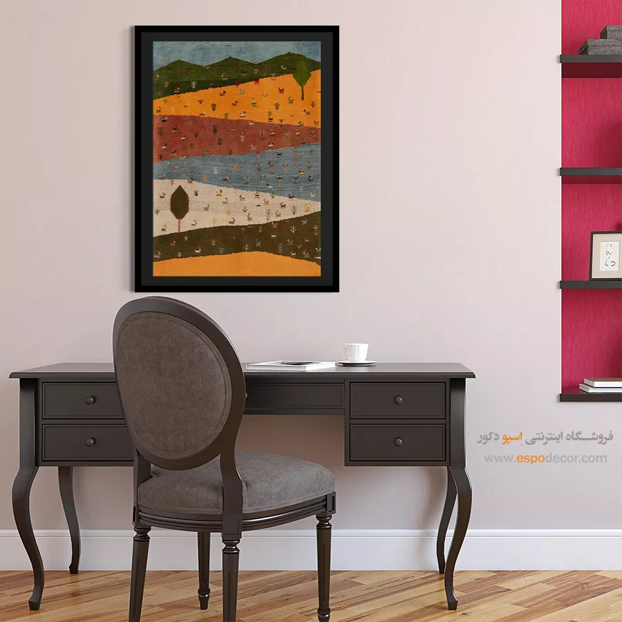 تابلو بوم گبه، روایتی از رنگ و ریشه است؛ جایی که نقوش سنتی ایرانی بر روی تابلو می‌رقصند.