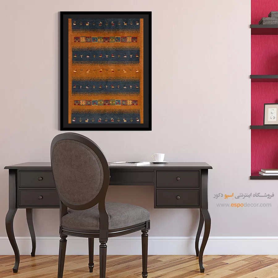 تابلو بوم گبه، روایتی از رنگ و ریشه است؛ جایی که نقوش سنتی ایرانی بر روی تابلو میرقصند.