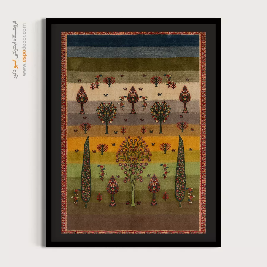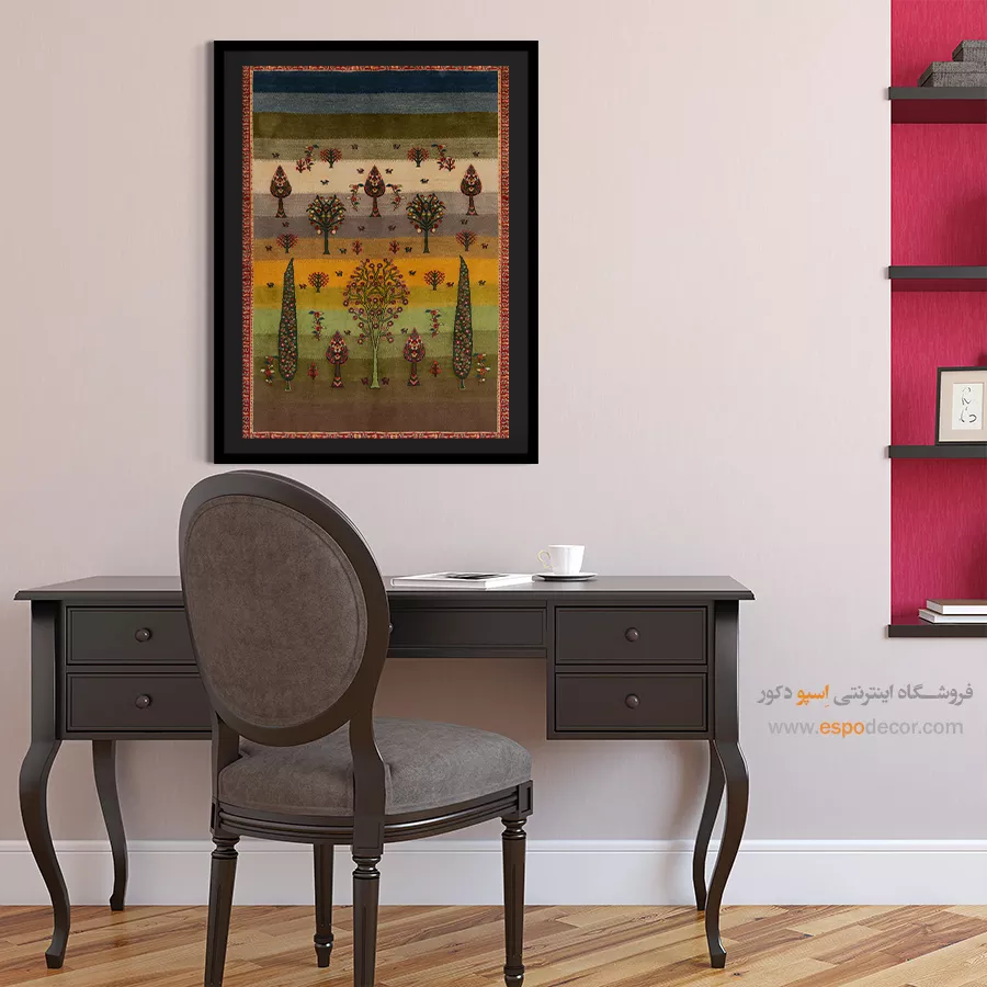 تابلو بوم گبه، روایتی از رنگ و ریشه است؛ جایی که نقوش سنتی ایرانی بر روی تابلو میرقصند.
