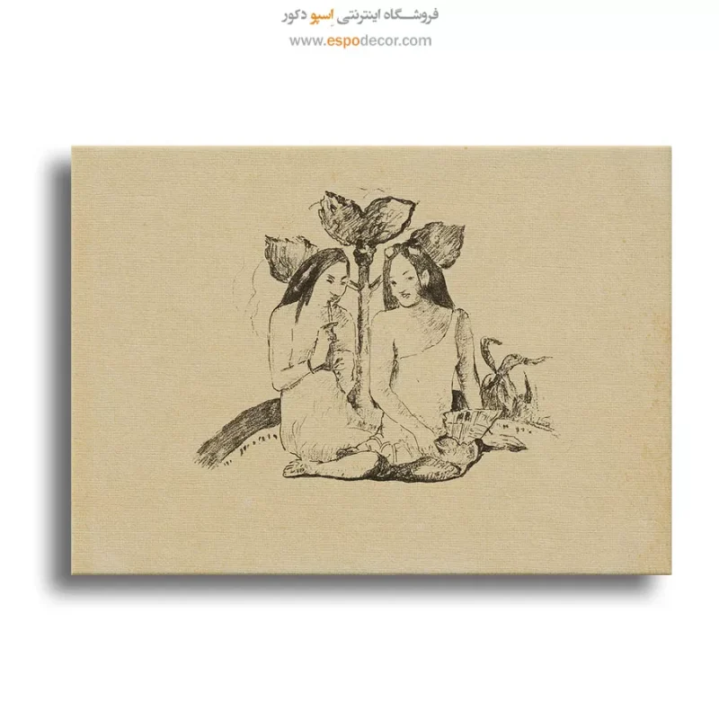 دو زن مائوری چمباتمه زده اند – تابلو نقاشی های پل گوگن
