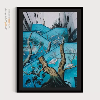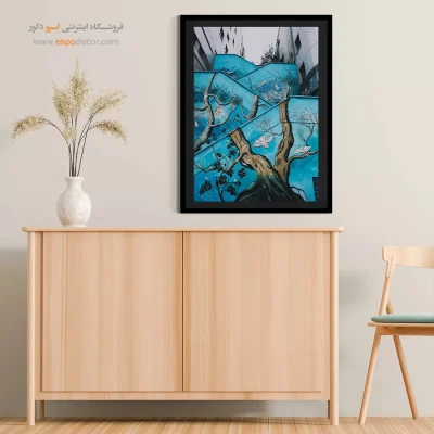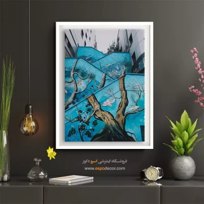 • انتخاب سایه‌های مختلف از رنگ دیوار: مانند تابلو آبی تیره روی دیوار آبی روشن، که حس آرامش و یکپارچگی در فضا ایجاد می‌کند.