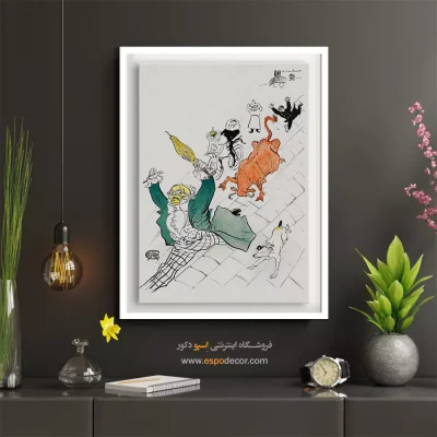 • استفاده از تابلویی با رنگ خنثی در پس‌زمینه: رنگ‌های سفید، خاکستری یا بژ، در حالی که رنگ اصلی دیوار یا رنگ‌های جزئی مبلمان و اکسسوری‌ها در طرح آن تکرار شده باشد. این روش تعادل را در فضا تضمین کرده و از شلوغی بصری جلوگیری می‌کند.