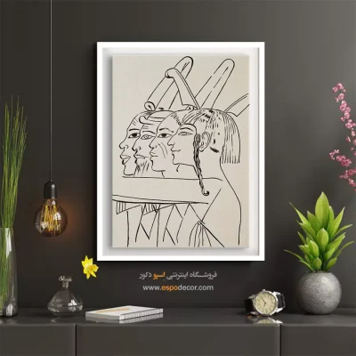 • استفاده از تابلویی با رنگ خنثی در پس‌زمینه: رنگ‌های سفید، خاکستری یا بژ، در حالی که رنگ اصلی دیوار یا رنگ‌های جزئی مبلمان و اکسسوری‌ها در طرح آن تکرار شده باشد. این روش تعادل را در فضا تضمین کرده و از شلوغی بصری جلوگیری می‌کند.