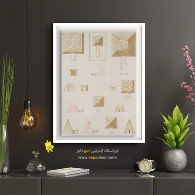 • استفاده از شابلون کاغذی (توصیه می‌شود): بهترین روش این است که کاغذ یا مقوا را به اندازه دقیق هر تابلو برش دهید و با چسب نواری کم‌چسب (مثل چسب کاغذی) موقتاً روی دیوار بچسبانید تا جایگاه نهایی و فاصله مناسب بین آن‌ها مشخص شود.