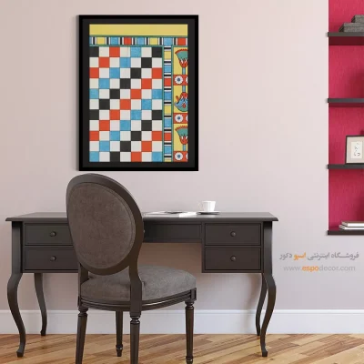• استفاده از تابلویی با رنگ خنثی در پس‌زمینه: رنگ‌های سفید، خاکستری یا بژ، در حالی که رنگ اصلی دیوار یا رنگ‌های جزئی مبلمان و اکسسوری‌ها در طرح آن تکرار شده باشد. این روش تعادل را در فضا تضمین کرده و از شلوغی بصری جلوگیری می‌کند.
