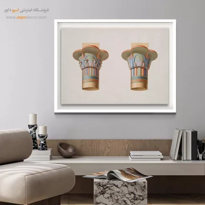 • استفاده از تابلویی با رنگ خنثی در پس‌زمینه: رنگ‌های سفید، خاکستری یا بژ، در حالی که رنگ اصلی دیوار یا رنگ‌های جزئی مبلمان و اکسسوری‌ها در طرح آن تکرار شده باشد. این روش تعادل را در فضا تضمین کرده و از شلوغی بصری جلوگیری می‌کند.