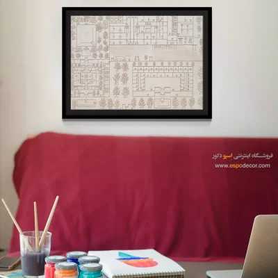 • استفاده از شابلون کاغذی (توصیه می‌شود): بهترین روش این است که کاغذ یا مقوا را به اندازه دقیق هر تابلو برش دهید و با چسب نواری کم‌چسب (مثل چسب کاغذی) موقتاً روی دیوار بچسبانید تا جایگاه نهایی و فاصله مناسب بین آن‌ها مشخص شود.