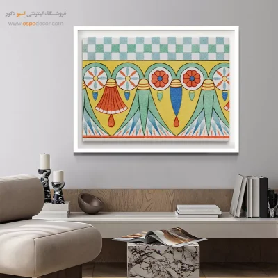 • استفاده از تابلویی با رنگ خنثی در پس‌زمینه: رنگ‌های سفید، خاکستری یا بژ، در حالی که رنگ اصلی دیوار یا رنگ‌های جزئی مبلمان و اکسسوری‌ها در طرح آن تکرار شده باشد. این روش تعادل را در فضا تضمین کرده و از شلوغی بصری جلوگیری می‌کند.