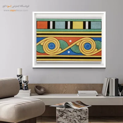 • استفاده از تابلویی با رنگ خنثی در پس‌زمینه: رنگ‌های سفید، خاکستری یا بژ، در حالی که رنگ اصلی دیوار یا رنگ‌های جزئی مبلمان و اکسسوری‌ها در طرح آن تکرار شده باشد. این روش تعادل را در فضا تضمین کرده و از شلوغی بصری جلوگیری می‌کند.