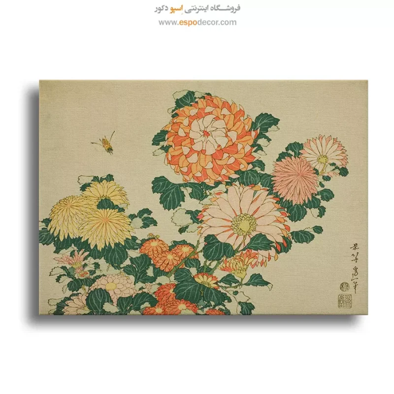 داوودی و زنبور عسل – تابلو نقاشی هوکوسای