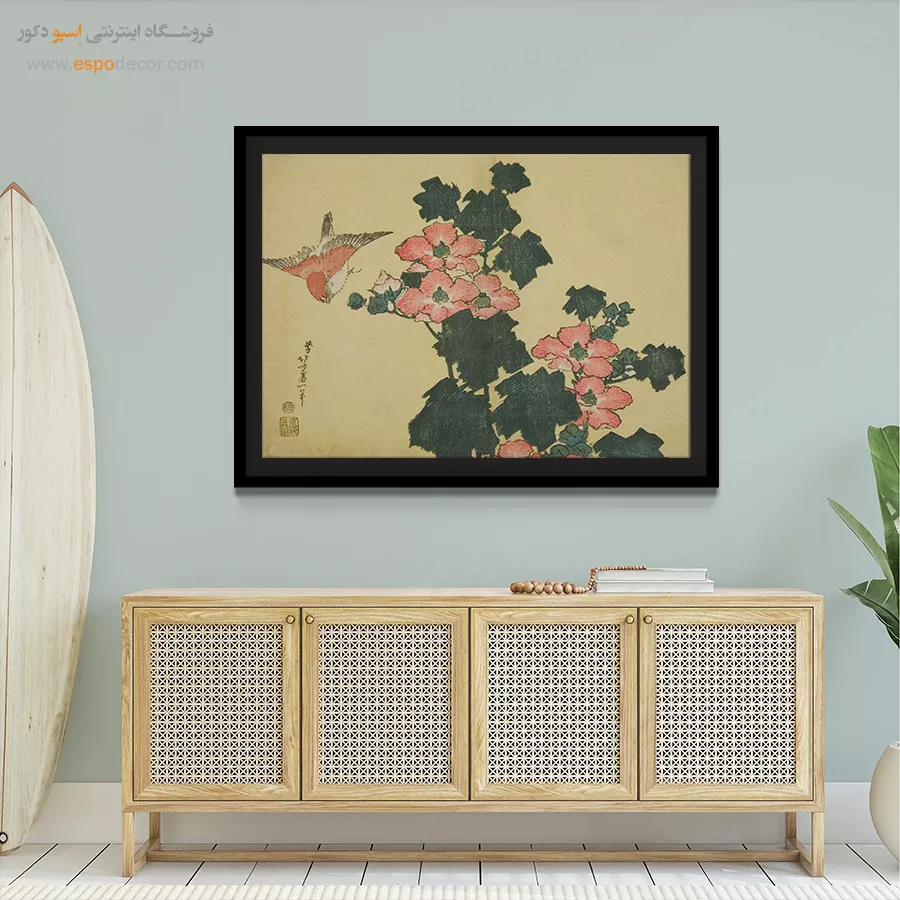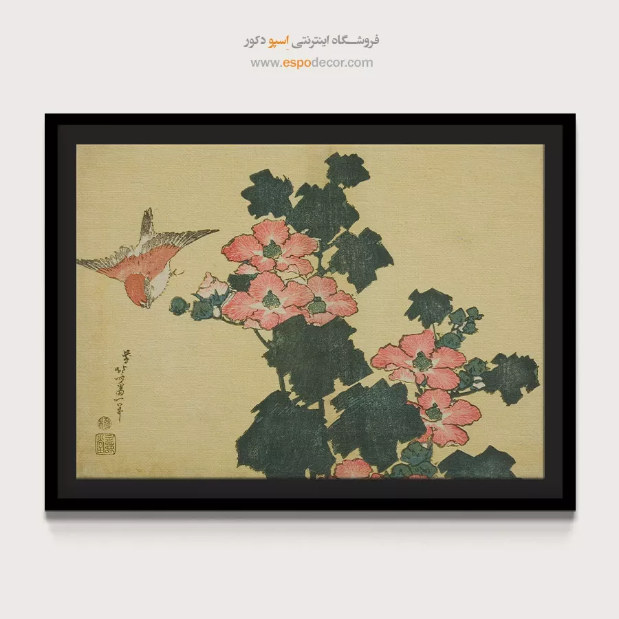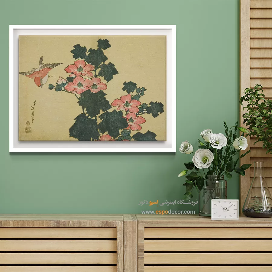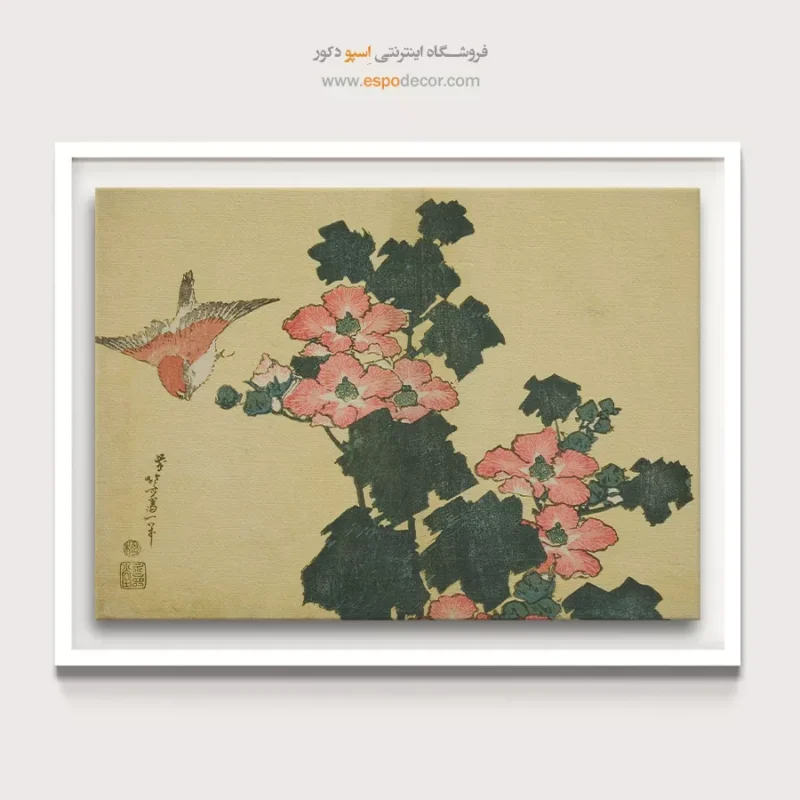 رزهای پنبه ای و گنجشک – تابلو نقاشی هوکوسای