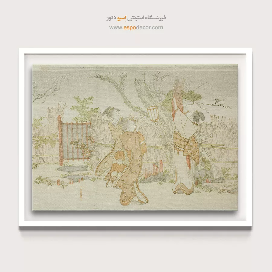 سه زن در زیر درخت آلو – تابلو نقاشی هوکوسای
