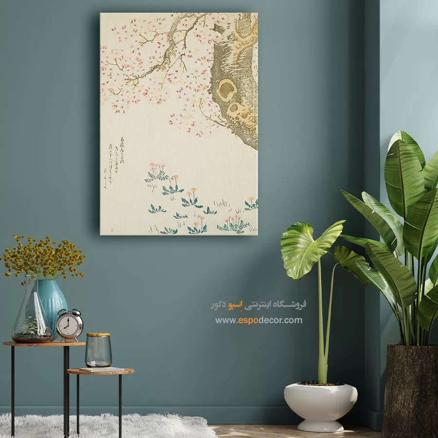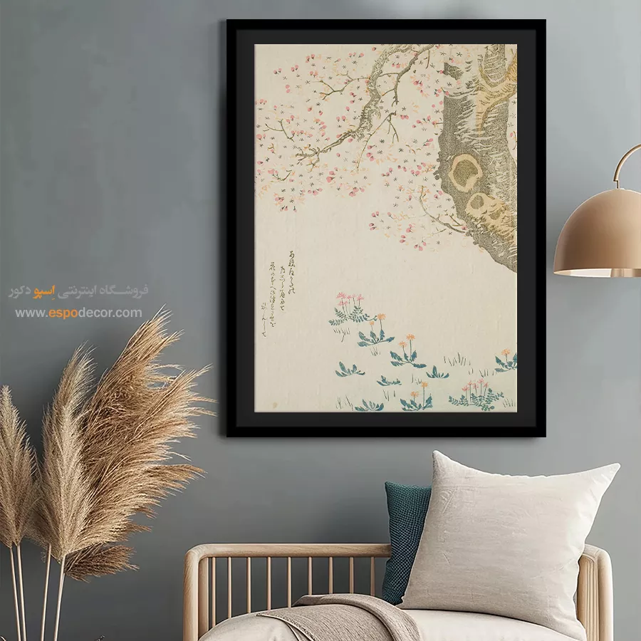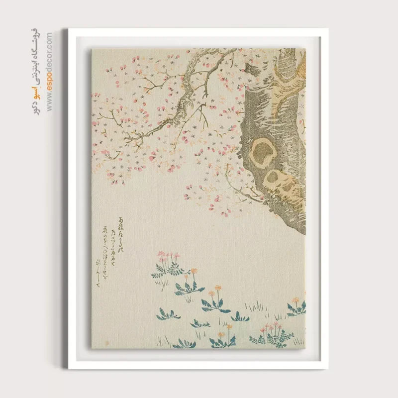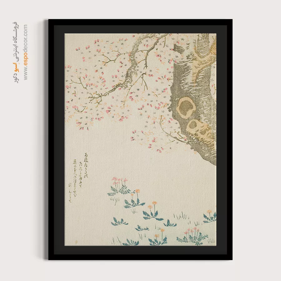 قاصدک و شبدر زیر درخت گیلاس – تابلو نقاشی هوکوسای