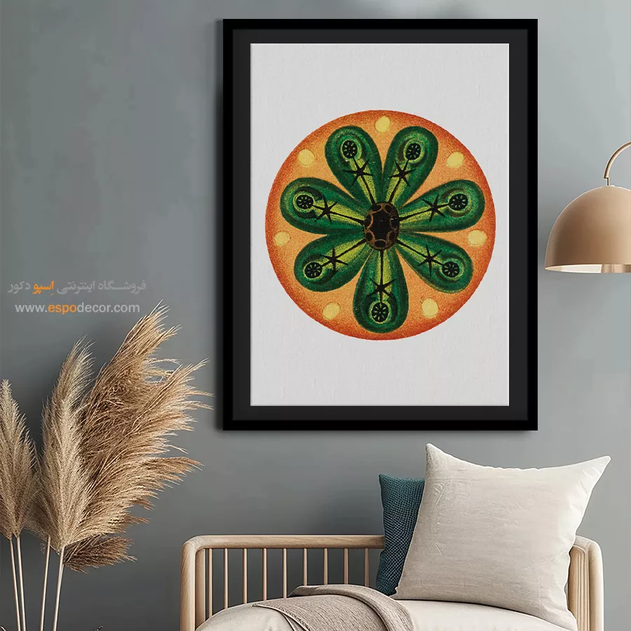 • انتخاب رنگ‌های مکمل یا متضاد: مانند تابلویی با تناژ نارنجی برای دیوار آبی، که تضاد جذاب و پویایی ایجاد می‌کند و تابلو را به نقطه کانونی تبدیل می‌کند.