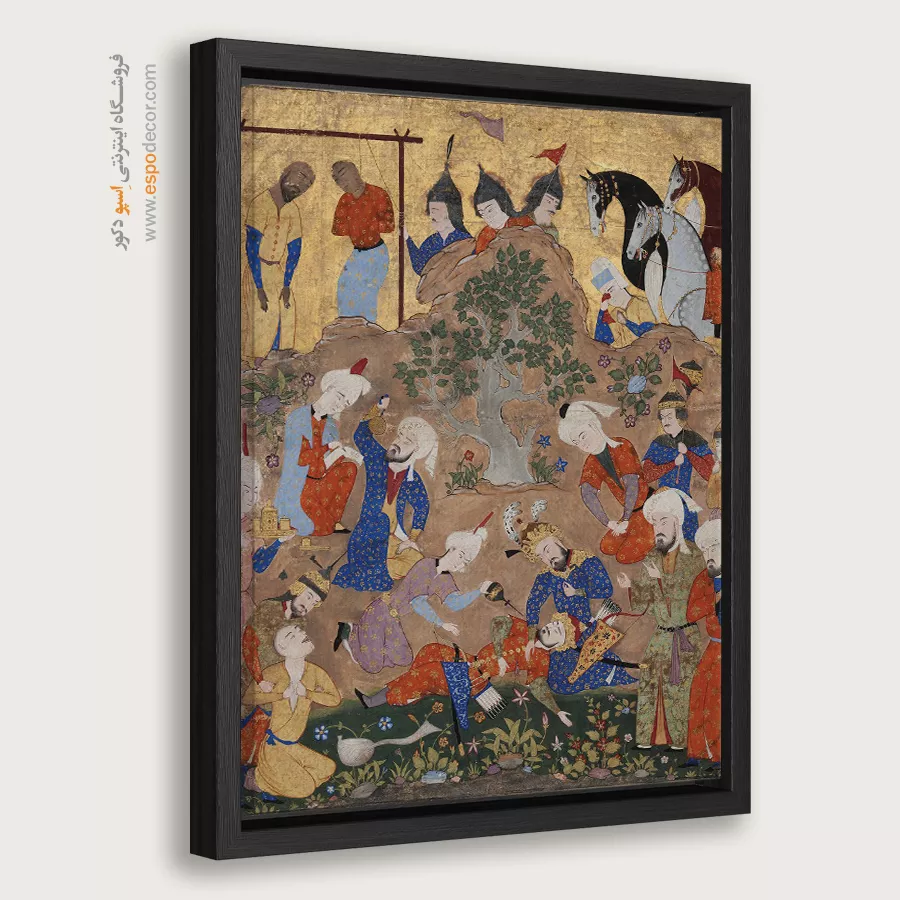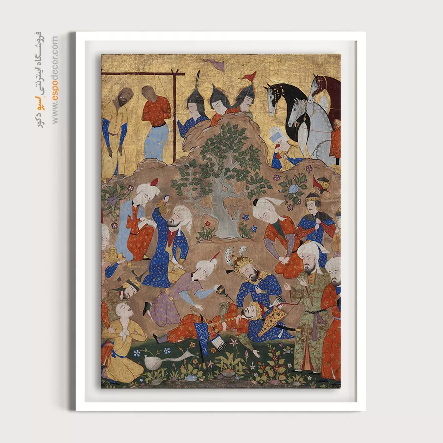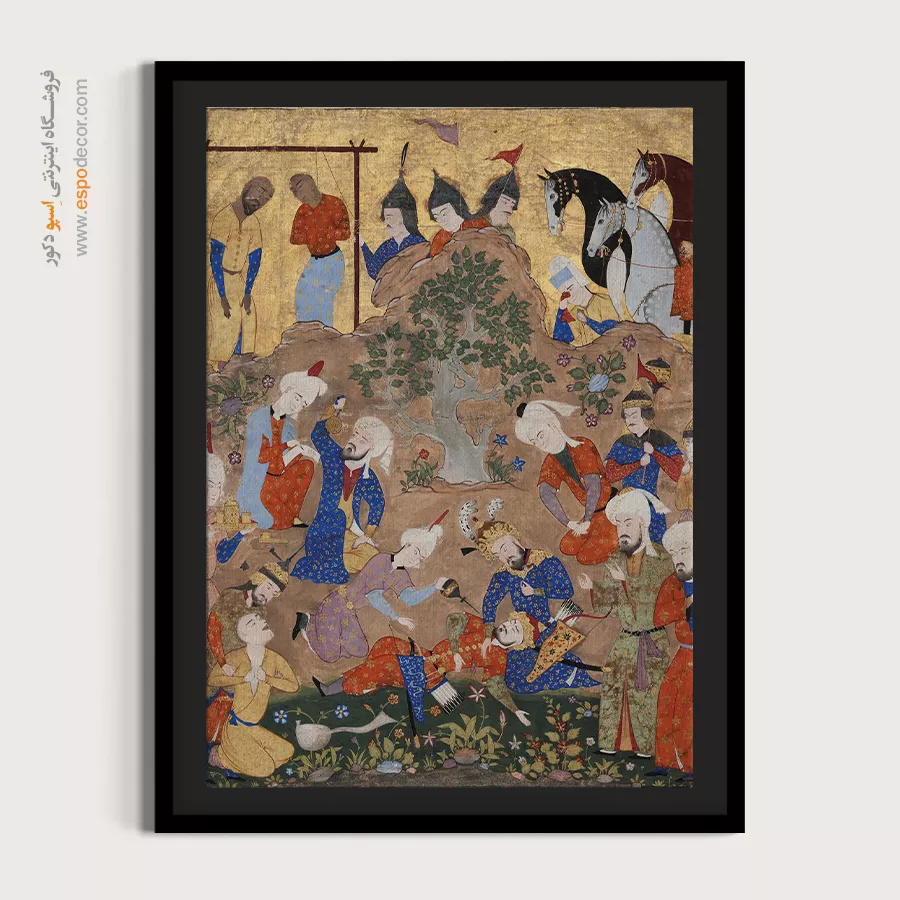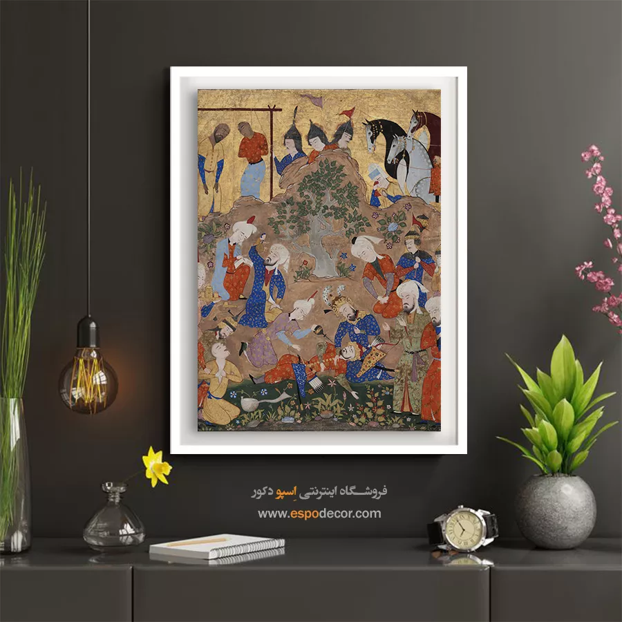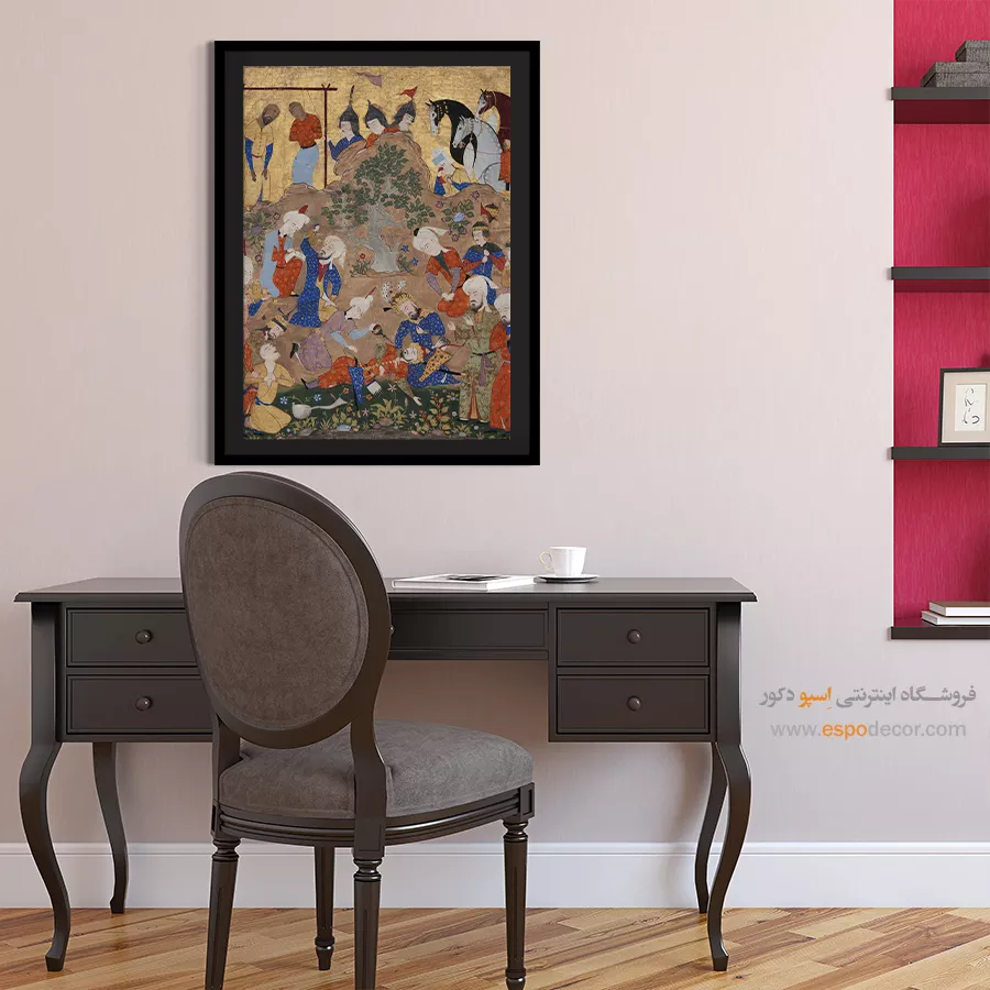 در ظرافت خطوط و درخشش رنگها، روایت هزارساله هنر مینیاتور و نگارگری ایرانی زنده میشود. این تابلو نقاشی ایرانی، یادگاری فاخر از میراث فرهنگی ایران برای خانهای آراسته و روحنواز است.