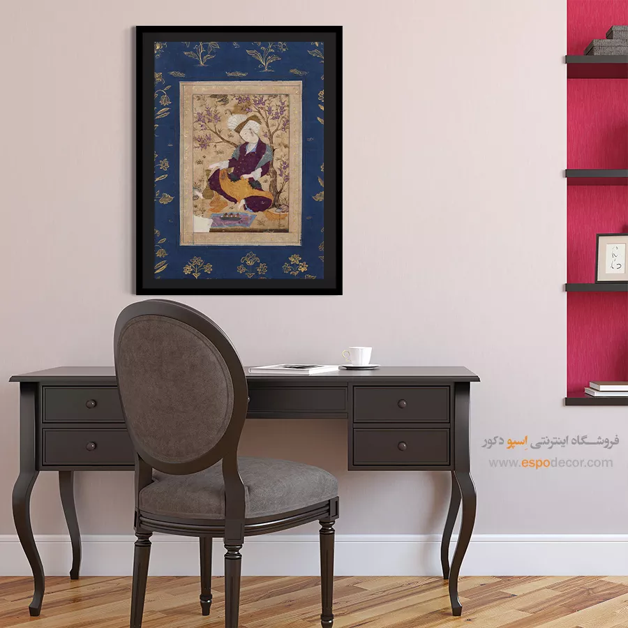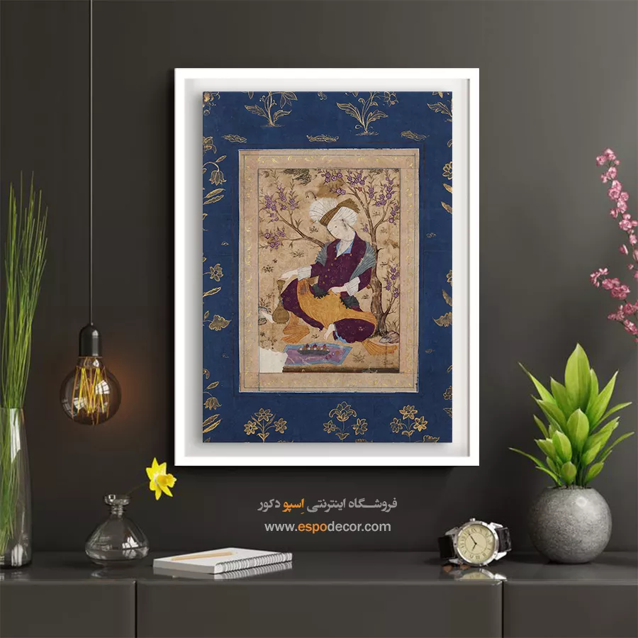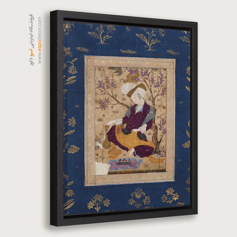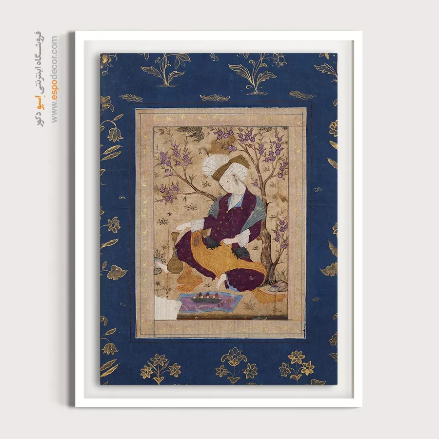 مرد جوان مست زیر درختی گلدار – تابلو نقاشی ایرانی