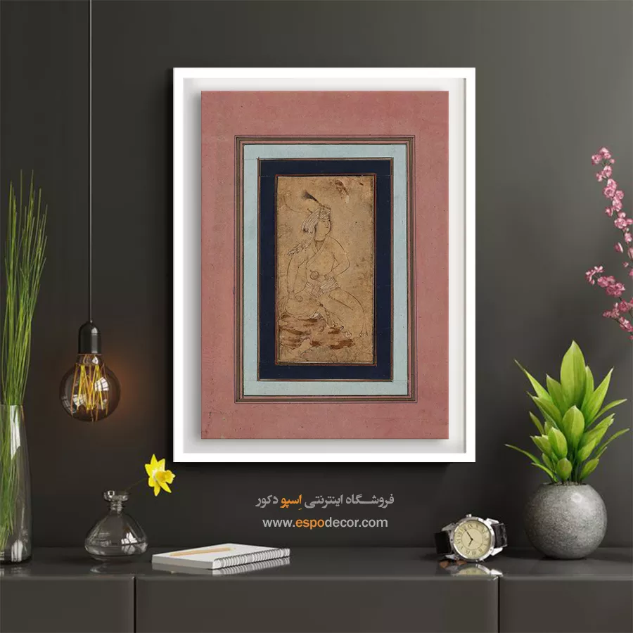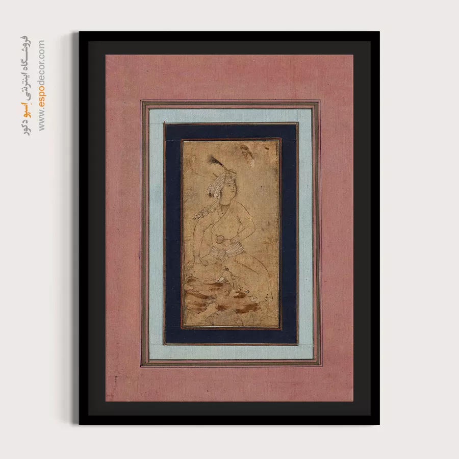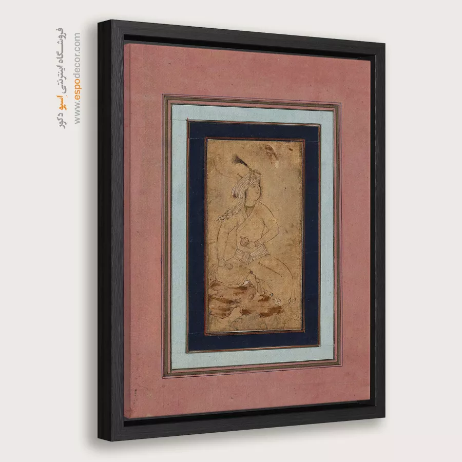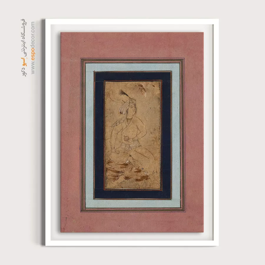 شاهزاده جوان روی صخره نشسته – تابلو نقاشی ایرانی