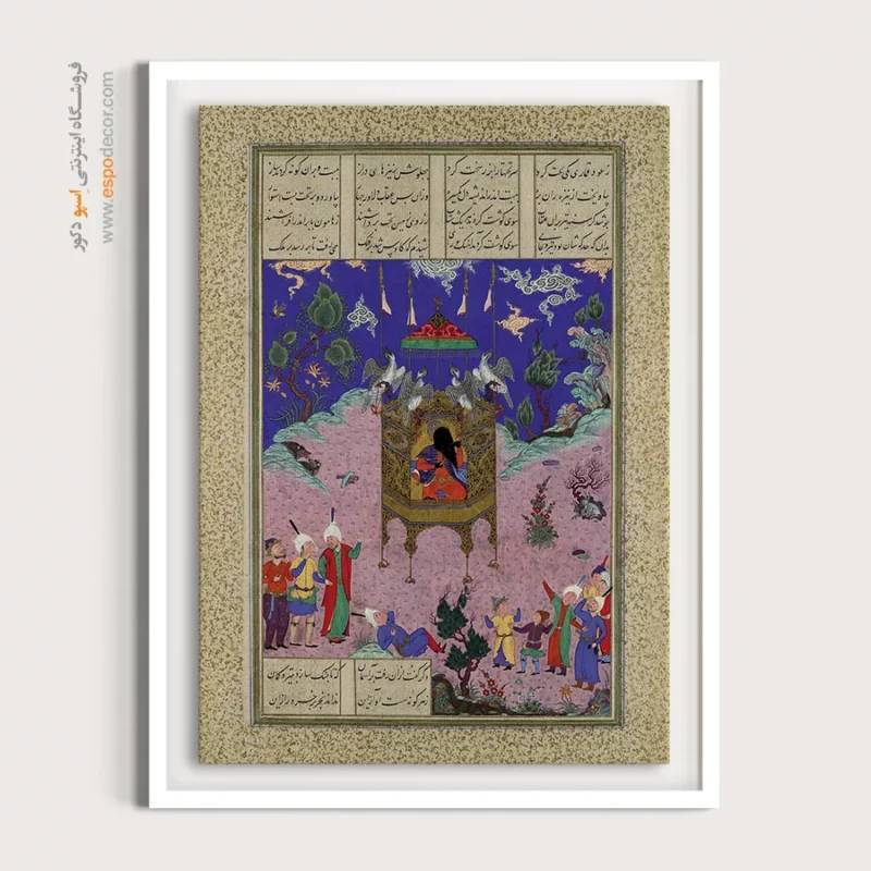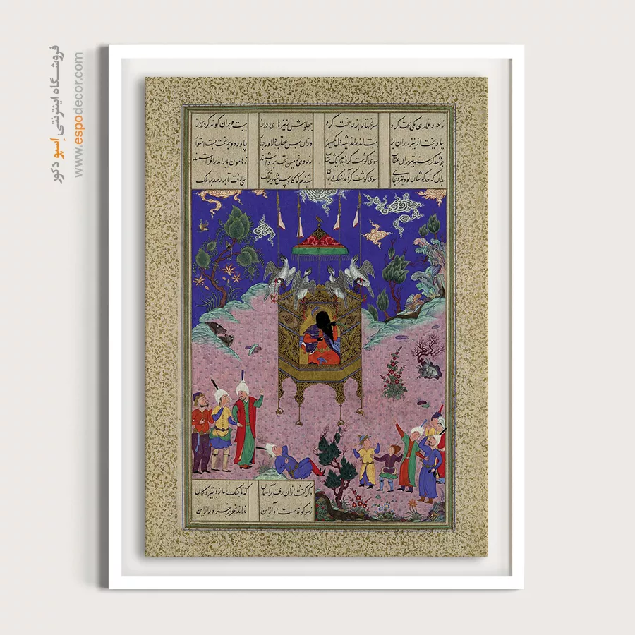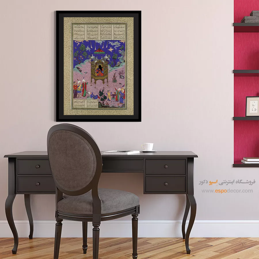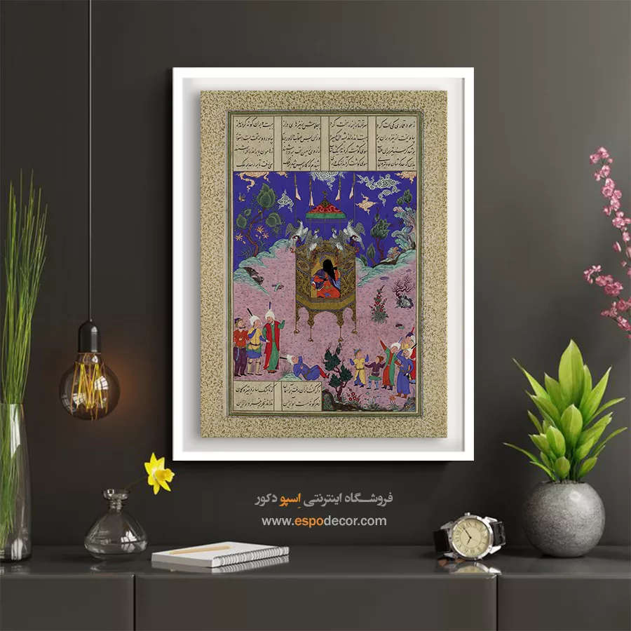 در ظرافت خطوط و درخشش رنگها، روایت هزارساله هنر مینیاتور و نگارگری ایرانی زنده میشود. این تابلو نقاشی ایرانی، یادگاری فاخر از میراث فرهنگی ایران برای خانهای آراسته و روحنواز است.