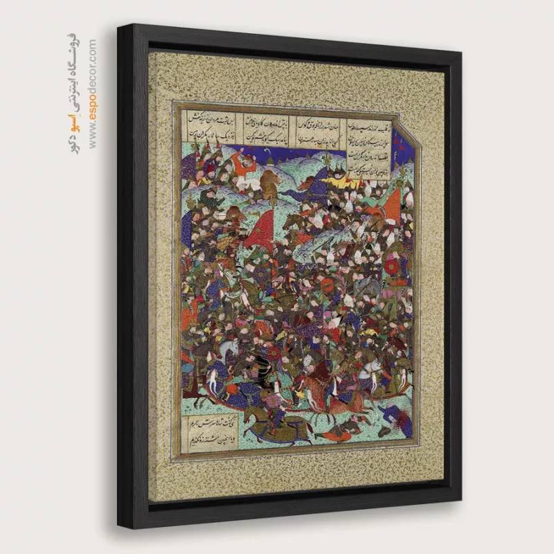 در ظرافت خطوط و درخشش رنگها، روایت هزارساله هنر مینیاتور و نگارگری ایرانی زنده میشود. این تابلو نقاشی ایرانی، یادگاری فاخر از میراث فرهنگی ایران برای خانهای آراسته و روحنواز است.