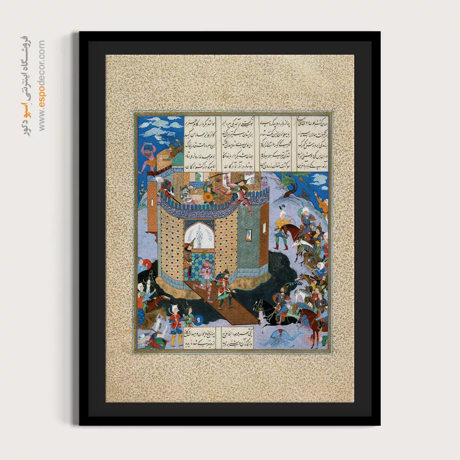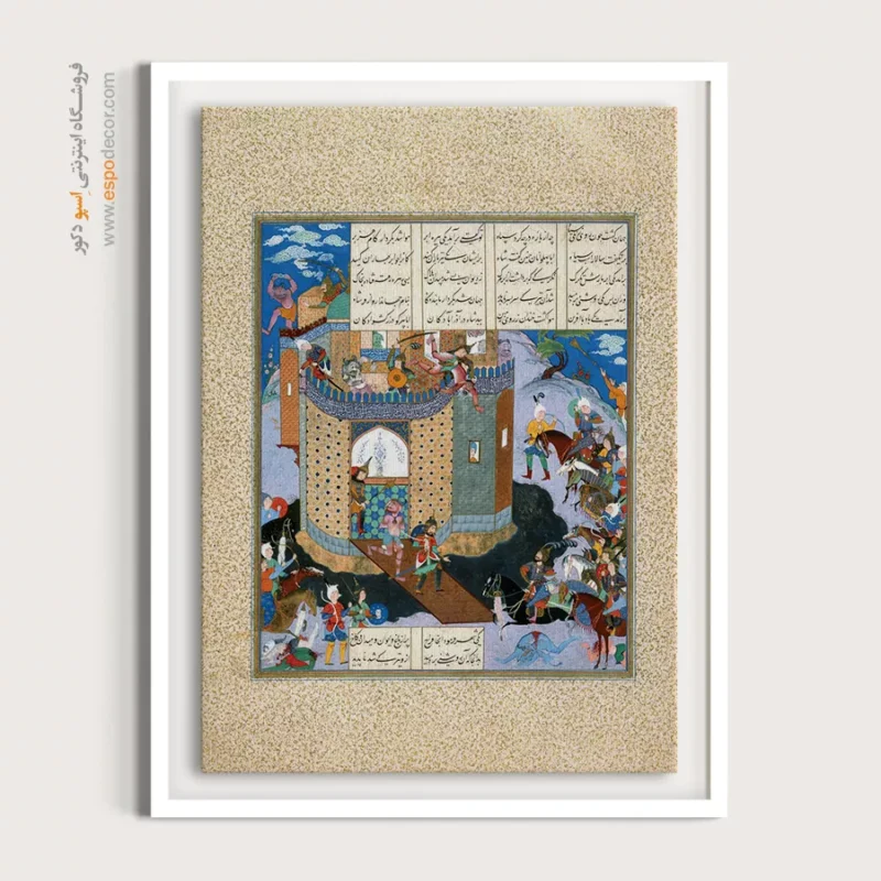در ظرافت خطوط و درخشش رنگها، روایت هزارساله هنر مینیاتور و نگارگری ایرانی زنده میشود. این تابلو نقاشی ایرانی، یادگاری فاخر از میراث فرهنگی ایران برای خانهای آراسته و روحنواز است.