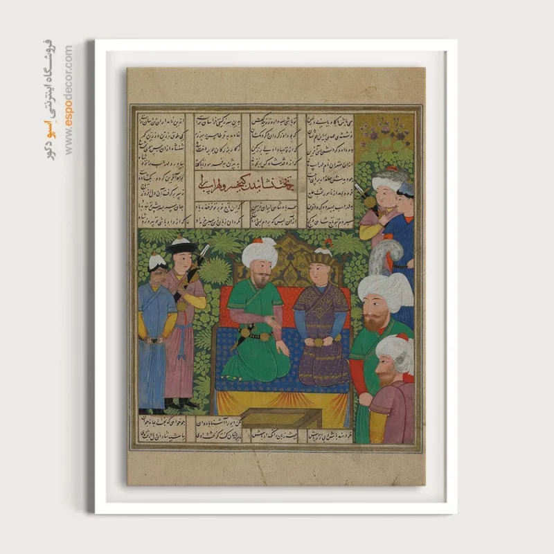 در ظرافت خطوط و درخشش رنگها، روایت هزارساله هنر مینیاتور و نگارگری ایرانی زنده میشود. این تابلو نقاشی ایرانی، یادگاری فاخر از میراث فرهنگی ایران برای خانهای آراسته و روحنواز است.