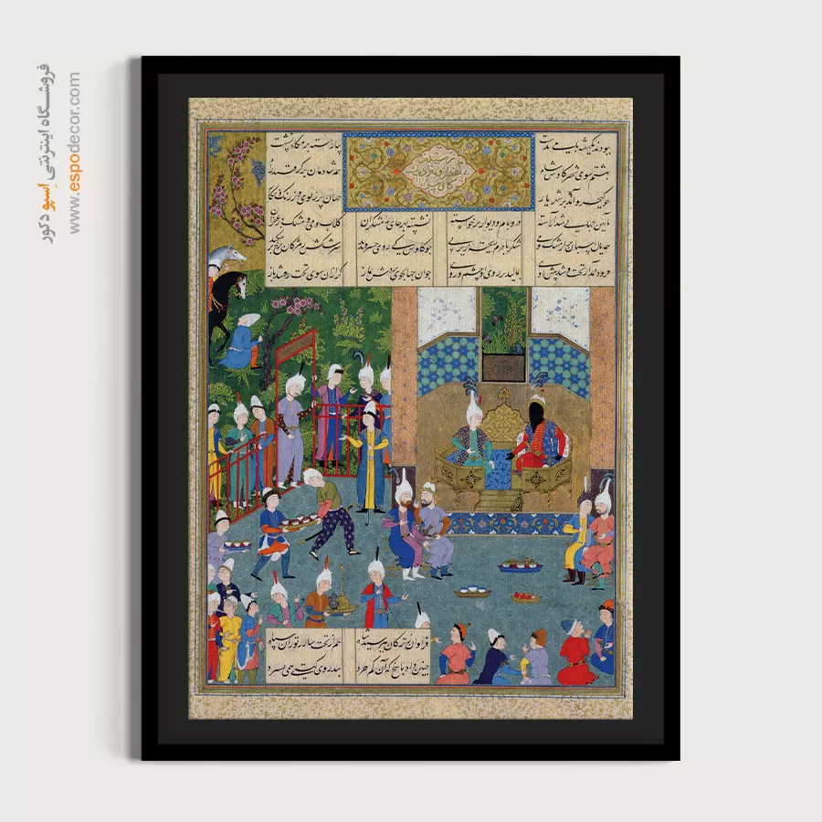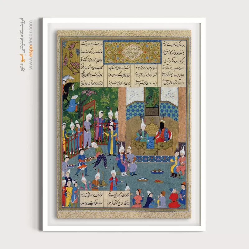 در ظرافت خطوط و درخشش رنگها، روایت هزارساله هنر مینیاتور و نگارگری ایرانی زنده میشود. این تابلو نقاشی ایرانی، یادگاری فاخر از میراث فرهنگی ایران برای خانهای آراسته و روحنواز است.