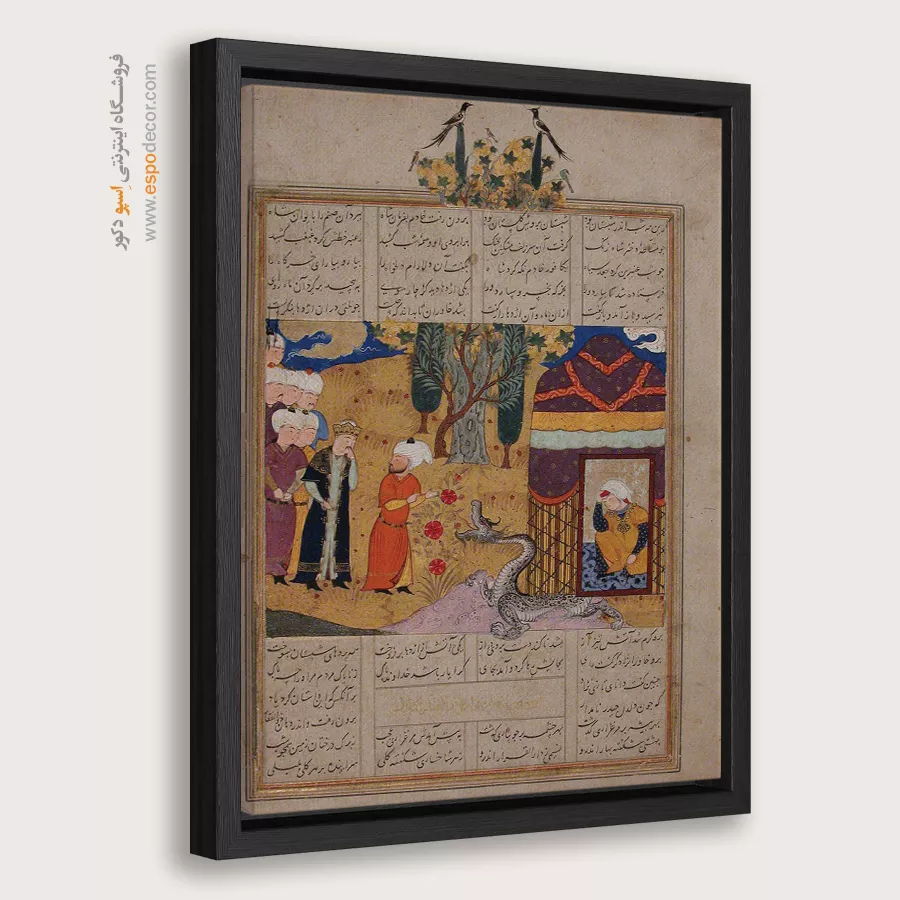 در ظرافت خطوط و درخشش رنگ‌ها، روایت هزارساله هنر مینیاتور و نگارگری ایرانی زنده می‌شود. این تابلو نقاشی ایرانی، یادگاری فاخر از میراث فرهنگی ایران برای خانه‌ای آراسته و روح‌نواز است.
